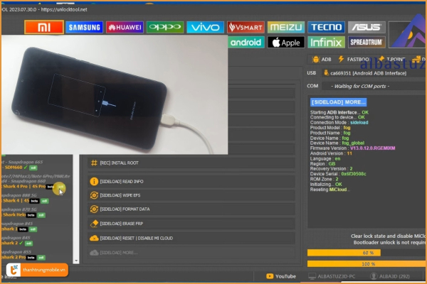 - Kỹ thuật viên sẽ tiến hành Bypass Redmi 10C FRP bằng các Box và công cụ, phần mềm chuyên dụng, đảm bảo an toàn và hiệu quả.