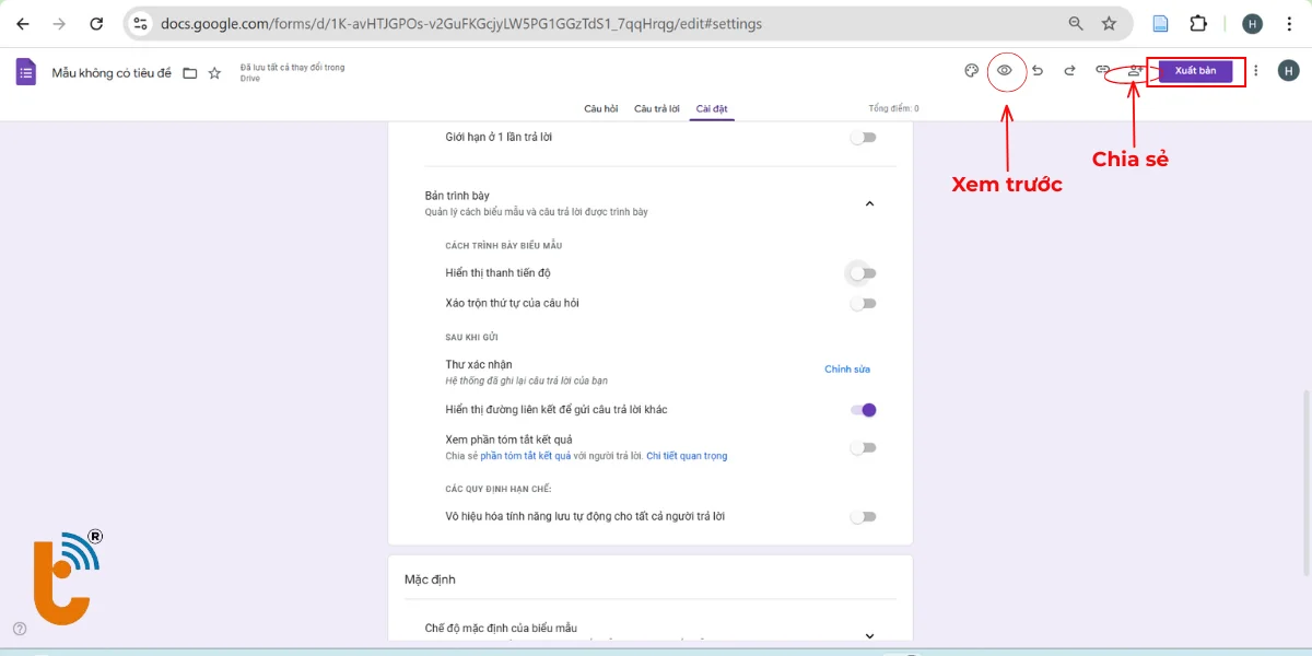 | 5 | Quên giới hạn số lần trả lời | Dễ bị spam hoặc điền lặp nhiều lần | Bật tùy chọn “Giới hạn 1 lần trả lời” trong phần Cài đặt > Trình bày |