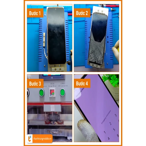 Tại Thành Trung Mobile, quy trình ép kính LG V60 được thực hiện bởi đội ngũ kỹ thuật viên chuyên nghiệp, với các bước sau: