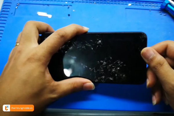 - Máy bị va đập mạnh, rơi xuống đất gây vỡ mặt kính. Trường hợp này còn có thể gây vỡ mặt lưng khiến bạn tốn thêm chi phí thay nắp lưng Vivo V11.