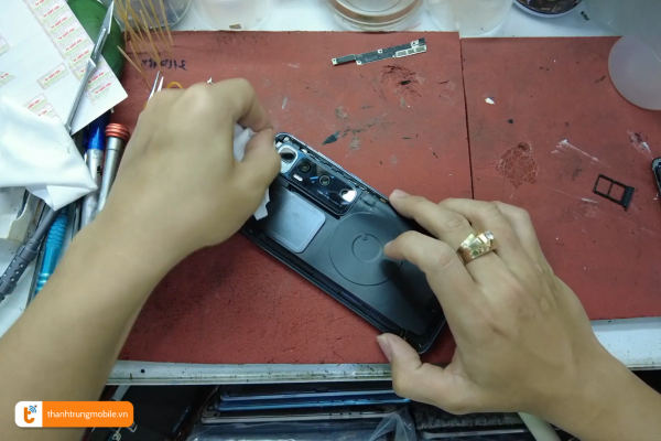 - Tiến hành thay thế kính Mi 10S bằng linh kiện zin mới 100%.
