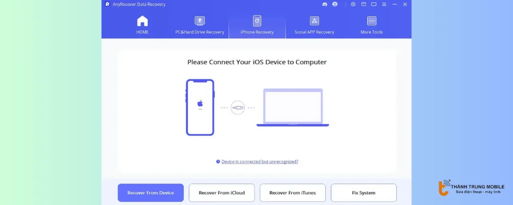 - Chọn "Recover from Device", sau đó kết nối iPhone của bạn với PC bằng cáp USB.