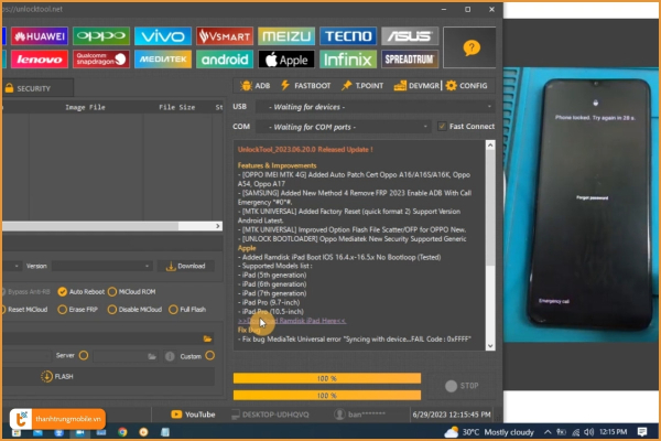 - Kỹ thuật viên sẽ tiến hành mở khóa Oppo A15 bằng các phần mềm, Box chuyên dụng.