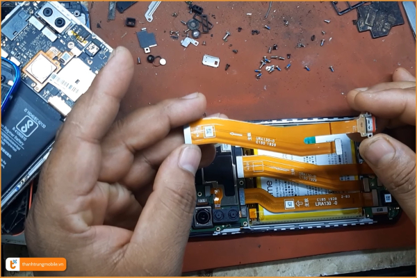 - Sau khi xác định lỗi, kỹ thuật viên sẽ tiến hành tháo rời điện thoại và thay thế chân sạc mới.