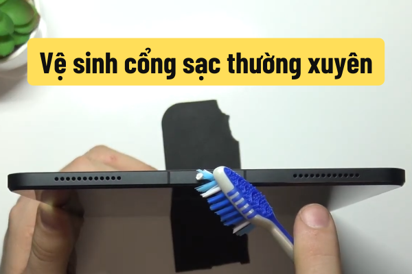 - Vệ sinh cổng sạc thường xuyên bằng khăn mềm hoặc bàn chải sạch.