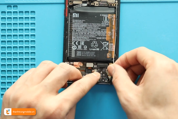 - Tiến hành thay chân sạc Xiaomi Redmi K20 Pro chính hãng.