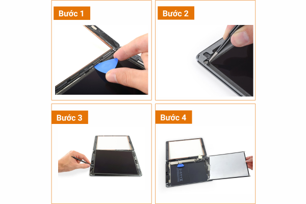 - Bước 4: Kỹ thuật tiến hành thay màn hình iPad 6. Thời gian nhanh chóng chỉ từ 1 đến 2 giờ.