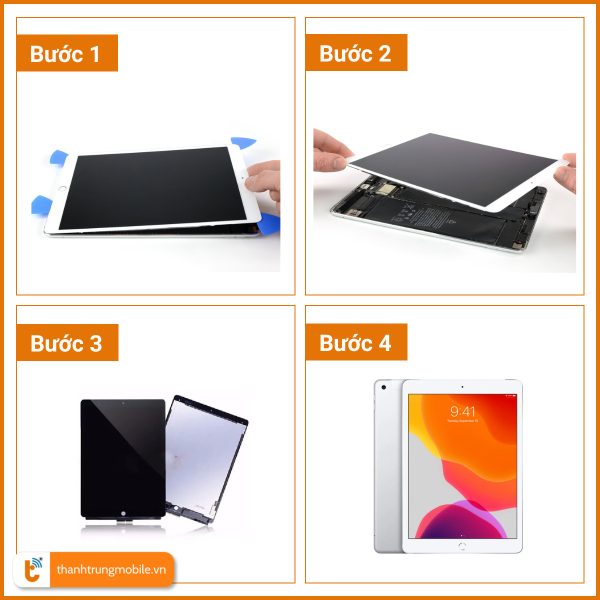 Để đảm bảo quá trình thay màn hình iPad Pro 10.5 diễn ra nhanh chóng và hiệu quả, Thành Trung Mobile luôn tuân thủ quy trình chuẩn với các bước cụ thể. Dưới đây là các bước chi tiết trong quy trình thay màn hình để bạn có thể tham khảo và yên tâm hơn khi sửa chữa thiết bị của mình.