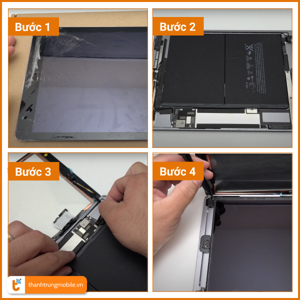 Quy trình thay ép kính iPad Air 4 tại Thành Trung Mobile được thực hiện như sau: