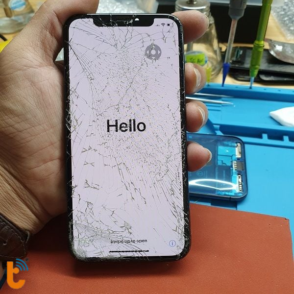 - Mặt kính iPhone Xs bị nứt, rơi vỡ gây mất thẩm mỹ mà còn có thể ảnh hưởng đến khả năng hiển thị và cảm ứng. Trong một số trường hợp, rơi vỡ cũng gây nứt kính lưng và cần thay kính lưng iPhone Xs.