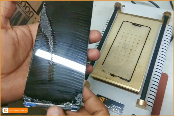 - Thực hiện tháo máy, mặt kính vỡ được tách ra khỏi thân máy một cách cẩn thận, tỉ mỉ.