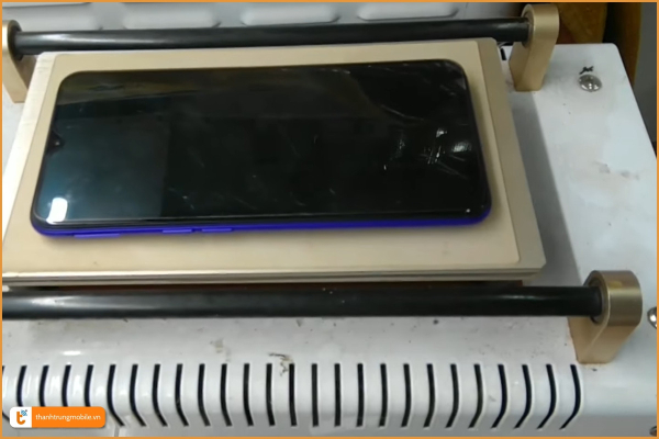 - Sử dụng máy ép kính chuyên dụng để ép kính mới vào màn hình
