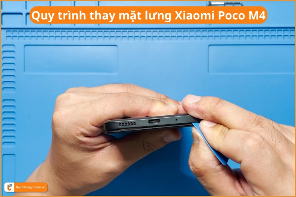 Quy trình thay nắp lưng Xiaomi Poco M4 tại Thành Trung Mobile được thực hiện một cách chuyên nghiệp và tỉ mỉ với từng bước cụ thể:
