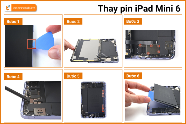 Quy trình sửa pin iPad Mini 6 bao gồm các bước sau: