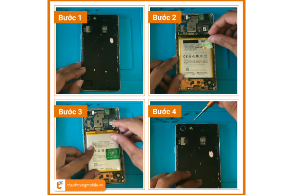 - 2. Tháo máy và kiểm tra: Tháo máy, loại bỏ pin cũ và kiểm tra các linh kiện khác.