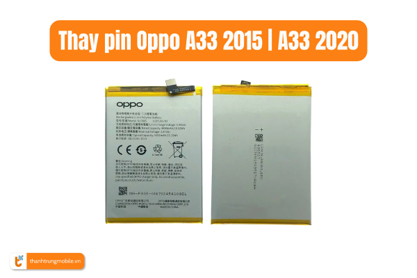 Thay pin Oppo A33 2015 | A33 2020 giúp giải quyết triệt để vấn đề pin chai, nhanh hết, máy nóng khi sử dụng. Thành Trung Mobile cam kết sử dụng linh kiện chính hãng, thay pin Oppo chất lượng cao, sạc đầy nhanh chóng. Đội ngũ kỹ thuật viên tay nghề giỏi, tỉ mỉ từng công đoạn, đảm bảo lắp ráp gọn gàng, máy hoạt động ổn định.