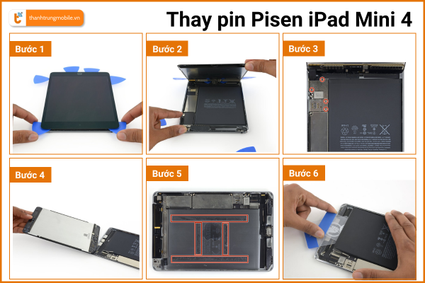 Bước 2: Tiến hành thay pin Pisen iPad Mini 4.