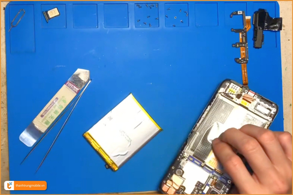 Tại Thành Trung Mobile, quá trình thay pin Realme X50 diễn ra theo các bước chuẩn: