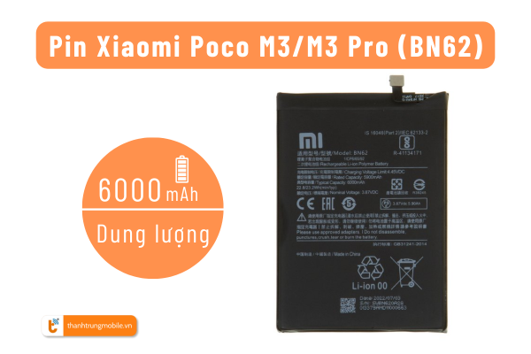Với những thông số ấn tượng này, pin Xiaomi BN62 là lựa chọn tin cậy để thay thế pin cho Xiaomi Poco M3 Pro và cả Xiaomi Poco M3, mang lại hiệu suất và tuổi thọ pin tối ưu.