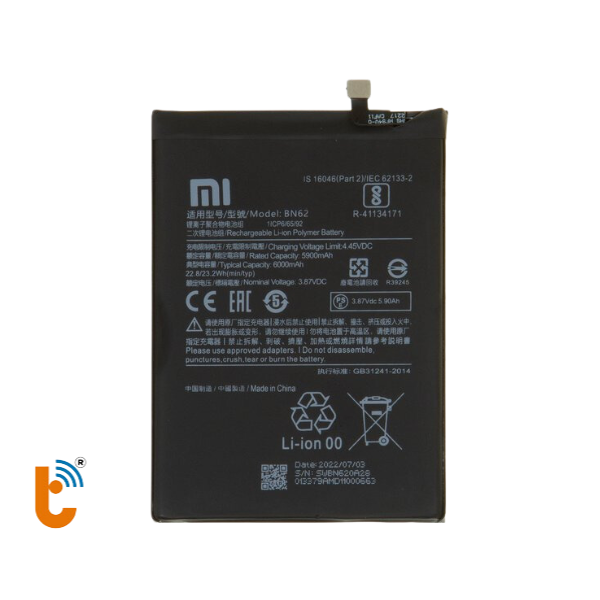 - Thành Trung Mobile cam kết chỉ sử dụng pin Xiaomi BN62 chính hãng, đảm bảo tuyệt đối về chất lượng và độ tương thích.