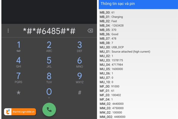- Thông tin về pin sẽ hiển thị trên màn hình.