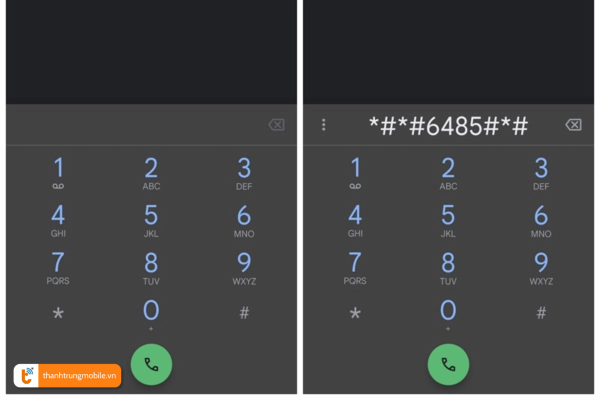 - Bạn hãy nhập ký tự #*#6485#*# thông qua ứng dụng gọi điện.