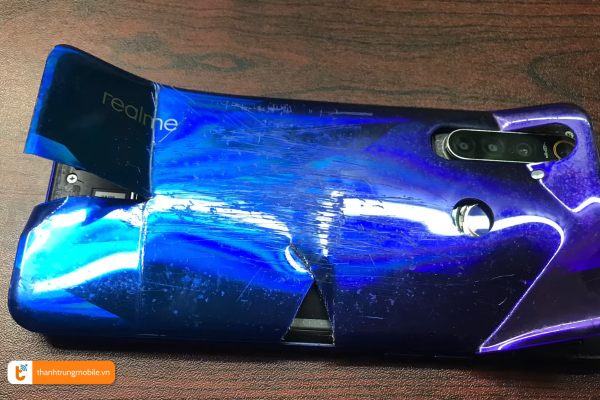 - Mặt lưng Realme 5 bị nứt vỡ sẽ ảnh hưởng đến tính thẩm mỹ của điện thoại, người dùng có thể thay vỏ để khắc phục.